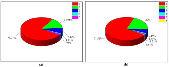 Meanwhile, the percentages of different types of upset were obtained. Figure 6 depicts the proportion of them in two cases, where (a) is for the first case while (b) is for the second case.