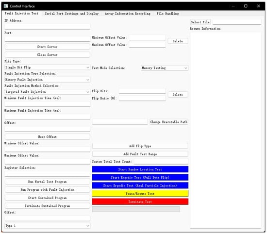 To enhance the efficiency of the fault injection software, a management terminal was developed in Python language. Figure 7 presents the graphical user interface of this terminal. Within this interface, users could input the target injection location, upset categories, and proportions for the fault injection, based on results of the Monte Carlo simulation. This information was then utilized to effectively carry out the fault injection.