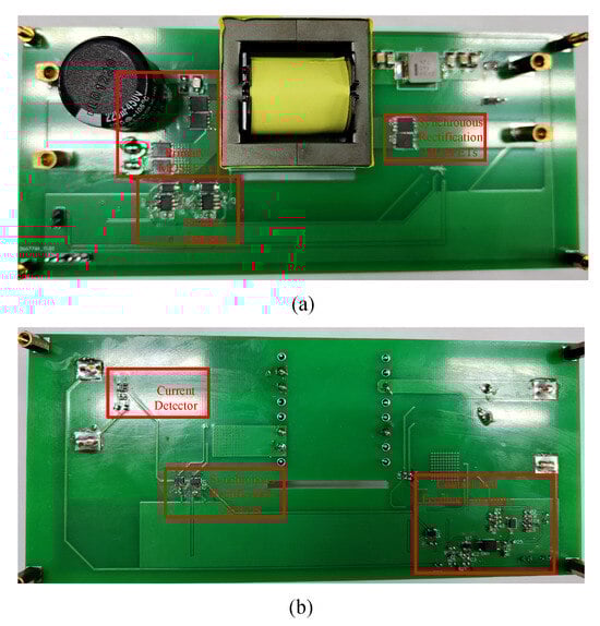After the functional validation of the proposed strategy, the efficiency of this study’s converter and the conventional converter was tested under different load conditions to evaluate the improvement in efficiency of the proposed scheme for the converter. The efficiency of the converter was defined according to (4).