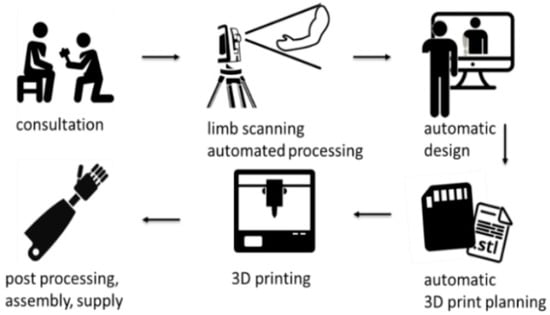 - Banga, H.K.; Kalra, P.; Belokar, R.M.; Kumar, R. Design and fabrication of prosthetic and orthotic product by 3D printing. In Prosthetics and Orthotics; IntechOpen: London, UK, 2020. [Google Scholar]