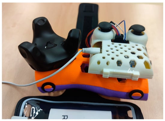The orthosis use was largely successful, allowing the patient to improve in functioning. After gathering feedback from the patient and working with another number of patients with similar conditions, it was decided to try making the therapy more compelling and interesting, by introducing gamification in virtual reality, as stated in the research concept. However, to make it easier for building and testing the prototype of the system, it was decided to make another orthosis for one of the creators of the system. The whole customized design procedure was repeated for one of the authors, and a new orthosis was designed and printed, as shown in Figure 6, using the same printing parameters, materials, and devices. This orthosis was subjected to further development of electronics and VR application, described in further chapters.