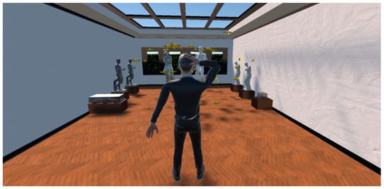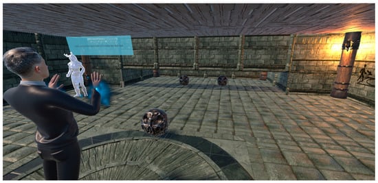 The next issue consisted in the choice of virtual reality device and the type of motion tracking system. The assumption here was to use the HTC Vive Pro helmet (HTC Corp., Taipei, Taiwan) and the body position sensors dedicated to it (Vive Tracker 3.0 devices). The next step was to determine the program in which the application will be carried out, which in the current case is the Unity environment, version 2021.3 (Unity Technologies Inc., Austin, TX, USA). Once the scenes are known, it was necessary to find or make the appropriate models of the virtual world, as well as soundtracks or visual effects. The programming part itself was divided into certain sub-steps. The first was to provide the necessary mechanics such as grasping, moving, interaction system, as well as the approximation of the avatar’s body movements based on sensor data. The next tasks were to realize the scenario, or more precisely to provide the basic functionality of each scene, which is individual and different for each case. The created elements was intended to be connected in such a way as to preserve the cause-and-effect sequence, as well as add instructions (in the form of icons, text, and sound), a tutorial and a menu with a language option (Polish and English options are assumed). In the programming, Unity’s own XR toolkit was used, connected with Vive Input Utility (Vive Software, version 1.18.3) and SteamVR SDK (Valve Corporation, version 2.7.3) plugin tools. Mostly free assets were used in building the game, including user’s avatar, objects, textures, sounds, etc.