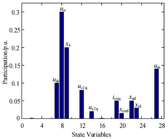 Drawing from the oscillation mode analysis in Table 1, the normalized participation factor of λ7,8 is computed to further clarify the relationship between λ7,8 and state variables. This is depicted in Figure 5 [26].