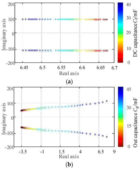 The influence of the DCWT subsystem operating parameters on oscillation mode. (a) Effect of DC capacitance Cf on oscillation mode. (b) Effect of outlet capacitance Cg on oscillation mode.