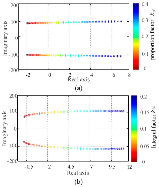 The influence of DCWT subsystem control parameters on oscillation mode. (a) Effect of proportion factor kp4 on oscillation mode. (b) Effect of integral factor ki4 on oscillation mode.