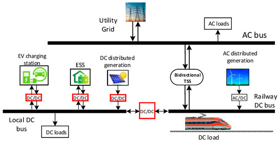 - Kaleybar, H.J.; Brenna, M.; Castelli-Dezza, F.; Zaninelli, D. Sustainable MVDC Railway System Integrated with Renewable Energy Sources and EV Charging Station. In Proceedings of the 2022 IEEE Vehicle Power and Propulsion Conference (VPPC), Merced, CA, USA, 1–4 November 2022; pp. 1–6. [Google Scholar] [CrossRef]