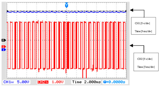 The proposed control relation in (6), implemented through the use of an 8-bit AVR microcontroller operating at an external clock frequency of 16 MHz, utilized a shunt resistance and a differential voltage measurement circuit to gauge the inductor current. Analog-to-digital conversion was performed with 10-bit resolution to acquire and convert the output voltage and coil current. The analog-to-digital sampling process took 37 μs.