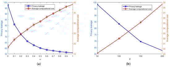 The relationship between , d, and the cost and privacy leakage. (a) Evaluation of parameter . (b) Evaluation of parameter d.
