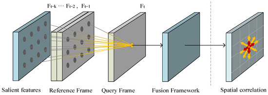 To improve the accuracy of data association, we use a spatial correlation layer to record the relationship between the object and the relative spatial location. For solving the problem of non-effective tracking caused by independent frame input in traditional MOT, by inputting multiple adjacent frames and object saliency feature frames, the approximate correlation between the object and the entire global context is obtained, while maintaining compactness and efficiency. Simultaneously, we consider the spatial position relationship between the object and the surrounding environment to deal with the tracking of the object in severe occlusion situations The network structure of spatio-temporal feature extraction based on local correlation is shown in Figure 3.