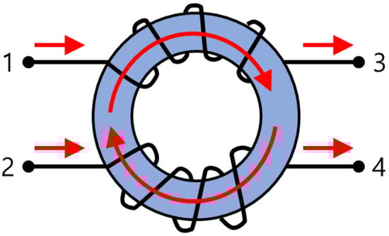 - Chen, H.; Hu, Y.; Wang, L.; Zhang, Z.; Chen, G. EMI filter design based on high-frequency modeling of common mode chokes. In Proceedings of the IEEE 27th International Symposium on Industrial Electronics (ISIE), Cairns, Australia, 13–15 June 2018; pp. 384–388. [Google Scholar]