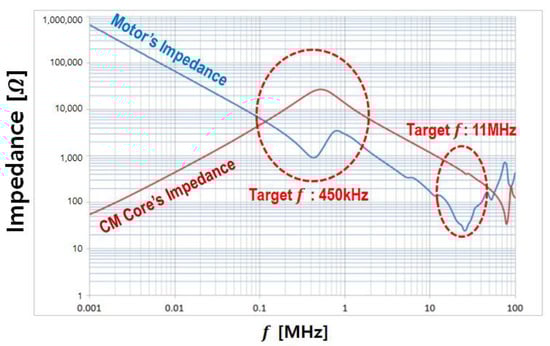 CM core and motor’s impedance characteristics.
