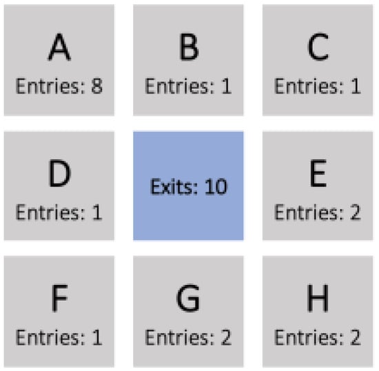 If the method of comparing the number of entries and exits was chosen, one would look at the example in Figure 1 and conclude that the people who left this specific area tended to go to neighbor A. In this specific instance, the observed behavior did not conform to the anticipated pattern. Those departing the area chose to visit every neighboring location except for A, and neighboring entries predominantly originated from other sources. If we had assumed that the high volume of exits from Figure 1 held significance, it would have led to erroneous conclusions. Consequently, the project will not yield insights into the mobility patterns within the nightlife areas.