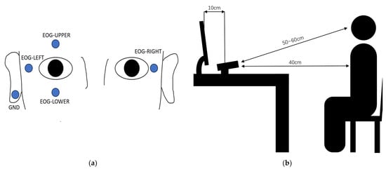 (a) Schematic diagram of EOG signal acquisition; (b) schematic diagram of the eye fatigue experiment.