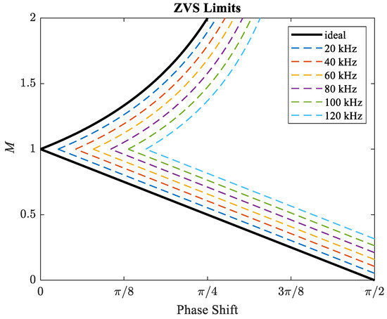 Note that now the ZVS limits are independent of the voltage values and depend only on their ratio, M. This simplification is beneficial for the converter design process, allowing the inclusion of other parameters at later design stages.