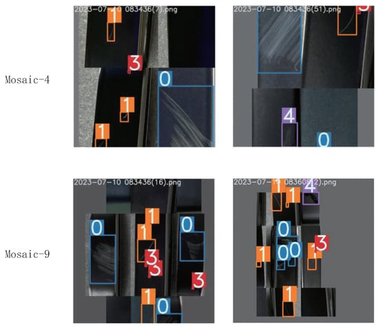 The Mosaic-9 method, compared to the Mosaic-4 approach, compiles images that incorporate a richer array of feature and background information as well as targets of varying sizes, as demonstrated in Figure 6. This strategy increases the diversity of the data samples and enlarges the dataset, which significantly boosts the network’s ability to generalize and minimizes the risk of model overfitting.