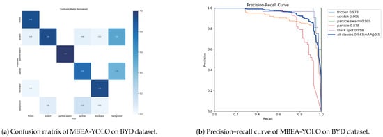 (a) Confusion matrix and (b) precision–recall curve of MBEA-YOLO on BYD dataset.