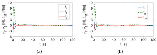 If a simplified model (with a diagonal inertia matrix) is used, the control scheme should be based on methods that do not have a complex mathematical form. Otherwise, it is difficult to expect effective results when applied to an asymmetric vehicle. When the control method for a simpler model is not mathematically complex, it can be extended to a more complicated model. Examples of such methods here are SZQZ2018 and JGY2018, which can be modified to be suitable for a model containing a symmetric inertia matrix. Although in its original form the latter algorithm did not work successfully, the control concept used can be extended. Modifying these two algorithms, however, will increase the complexity of the controller but expand its usefulness.