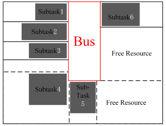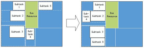 In this paper, we further propose an optimization method for the centralized bus resource management algorithm based on the task layout algorithm, which uses resource fragments generated by task placement to place other tasks to improve resource utilization. As shown in the Figure 8, the resources are shared after the tasks are combined.