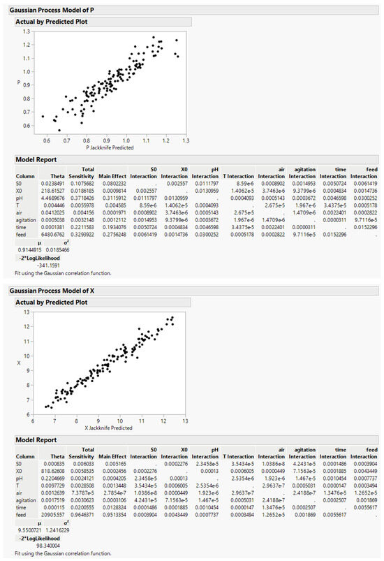 Gaussian process fit responses P and X over the full design space (JMP 17.0).