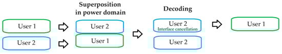 The key problem in 6G networks is the scarcity of spectrum, resulting from the unprecedented load generated by the large number of devices and communication between them. VLC is a viable high-speed alternative or complement to radio frequency (RF) technologies. This is important because VLC is cost-effective, energy-efficient, and safe, using current infrastructure, both in indoor environments (factory halls, offices) and underwater environments. VLCs face a number of limitations: restricted LED bandwidth, dimming, flicker, line-of-sight (LOS) requirements, impact of severe weather conditions, noise, light interference, shadows, transmitter and receiver alignment, signal decoding complexity, and mobility issues. Non-orthogonal multiple access (NOMA) has been introduced as an answer to these issues (Figure 6) [10].