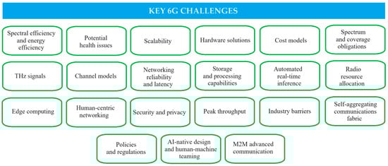 The sixth-generation spectrum covers several bands from 410 MHz to 71 GHz and THz frequencies [3]. Sixth-generation technologies will operate on the same frequencies as 4G long-term evolution (LTE) (410 MHz to 6 GHz) and 5G new radio (410 MHz to 7.125 GHz and 24.25 to 71 GHz), plus additional frequencies (7.125 to 24.25 GHz) and sub-THz frequencies. The key enabling technologies for 6G are: