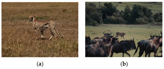 Sit-and-wait strategy (see Figure 1b): in the search mode, when the prey appears in the line of sight, it is very easy to spook the prey with small movements, and the cheetah will choose the sit-and-wait strategy to wait for the prey to approach. The mathematical representation is []