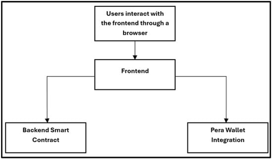 In the design and development phase, the BBVV artifact was conceived with a clear system architecture. The BBVV artifact was designed using a client-server model, using Next.js for the client-side interface, PyTeal for the server-side smart contract logic on Algorand, and Pera Wallet for secure authentication and transaction signatures. In this phase, primary modules and an operational workflow were created detailing user interactions with the system via web browsers, data requests, and transfers.