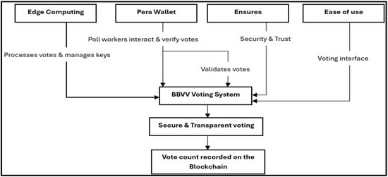 Election data are managed via Algorand’s blockchain platform, which is known for its efficiency and speed, especially with its Layer 1 smart contracts. Figure 3 shows the structure of the BBVV implementation.