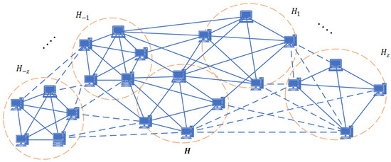 Our primary objective is to improve data availability, persist data integrity, and identify optimal nodes for data storage in a cryptographic distributed storage network with as minimal as possible storage overhead and processing time. Robust-DSN allows users to control the resilience level and enables file recovery despite a large-scale failure of storage nodes happening in the underlying storage network. Robust-DSN uses IPFS as an underlay storage layer and requires no modification to the underlying storage system. The system architecture of the Robust-DSN system is shown in Figure 1. This system architecture is separated into three layers: DSN users, DSN infrastructure itself, and DSN service providers. Figure 2 describes the underlay storage network where H is the home region and is the chain of neighboring regions. Joining the DSN network as a service provider is simple, requiring the installation of an IPFS node to connect to the network. For our experiments, a virtual machine (with resources of 16 GB RAM, 256 GB of storage, and a five-core CPU) hosting multiple Docker containers was set up to mimic a private cluster of DSN service providers. Each container was allocated different resources to indicate a heterogeneous resource environment. The users request on-demand and reliable storage selections from the service provider network, delivering their data along with corresponding performance requirements. As the main components, the DSN infrastructure incorporates a so-called HYDREN algorithm that ensures data reliability and integrity, the DSWS component to search the most appropriate service providers to ensure performance requirements, a REST API, and a mechanism for processing the requests concurrently.