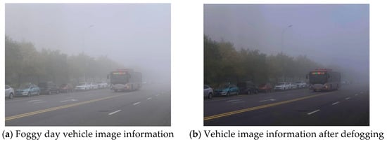 The AOD-Net convolutional layer structure presented in Table 1 demonstrates the simplicity and suitability of the AOD-Net neural network topology for mobile devices. The application of the AOD-Net neural network algorithm for defogging purposes leads to a significant reduction in image fog, resulting in improved visibility of vehicle information within the image. These enhancements provide a valuable advantage for subsequent target detection tasks, as illustrated in Figure 2 showcasing the AOD-Net defogging comparison results.