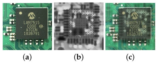 An example of a chip component: (a) optical image, (b) X-ray image, (c) fused image.