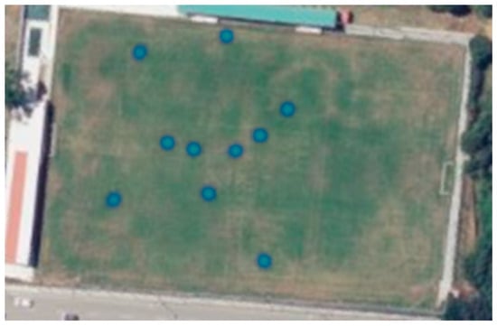 When this method is applied to grassroots football teams, it is observed that the positions are still not so fixed, as shown in Figure 10. This is true in the different cases in which it has been calculated, in line with the findings of [], which suggests that centroids vary with the age of the players (both at the individual and team level), implying a better tactical performance that improves with age.