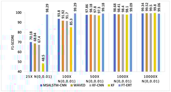 Figure 6, Figure 7, Figure 8 and Figure 9 show the results of our approach alongside the baseline results. Figure 6 shows that our FT-ERT model achieves better results in most instant anomaly detection cases. Furthermore, Figure 7 depicts that our FT-HV model achieves better results when the anomaly magnitude is low and obtained poorer results in the rest of the cases for instant anomaly detection. In Figure 8, it can be noted that our FT-RF model achieves poorer results in the rest of the cases for instant anomaly detection. Finally, Figure 9 depicts that our FT-HV model achieves better results when the anomaly magnitude is low and obtains poorer results for instant anomaly detection in the rest of the cases.