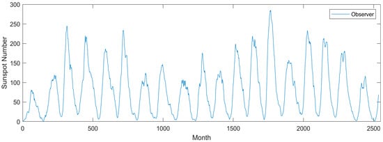 Sunspots refer to the dark spots, which often appear on the sun’s photosphere, and they reflect solar activity [1]. Their basic indication is the sunspot number, which is closely related to climate anomalies and the weather on earth [2,3]. When these clusters of sunspots reach their peak, they trigger solar flares and coronal mass ejections (CMEs), in which energetic particles released via solar activity flow toward the earth and interact with the earth’s magnetic field, which in turn leads to geomagnetic storms. As geomagnetic storms affect the earth’s ionosphere, radio signal propagation is impeded, which not only affects terrestrial radio communications, such as electronic equipment and radio and television transmissions, but can also lead to the disruption of satellite signals, affecting the navigation systems of aircraft and ships, as well as the normal operation of artificial satellites. In extreme cases, these phenomena may also affect the power networks, leading to disruptions in the supply of electricity. This has important implications for decision making and the reduction in accidents in electronic communications, precision manufacturing, and everyday life. Therefore, the accurate prediction of sunspot number is very important [4]. The sunspot number is non-linear and non-stationary, which makes it very difficult to predict, and it belongs to a typical time series [5,6]. Many scholars pay more attention in building different sunspot number prediction models to improving the prediction accuracies. There are two main class methods for predicting the sunspot number: one is based on mathematical statistics, and the other is based on machine learning.
