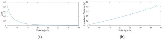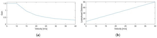 Most nonlinear controllers are designed to operate at various speeds even if their tuning parameters need to be scheduled with velocity [,,]. Some linear controllers, such as PID and LQR, are easily extended to parameter-varying control at the cost of additional compute resources and complexity.