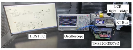In order to further verify the effectiveness of the proposed control strategy, a hardware-in-the-loop experimental model of the GFM inverter with a structure corresponding to Figure 1 is constructed. As shown in Figure 7, the hardware-in-the-loop system consists of two parts: the controller and the RT Box. The controller adopts the chip TMS320F28379D control board, which is connected to the RT Box through the interface board, and the sampling data are also sent to the oscilloscope through the ports on the interface board to display the waveforms. The RT Box is a real-time simulator specially designed for power electronics applications. With numerous analog and digital input/output channels and FPGA embedded CPU cores, it is a versatile processing unit for real-time hardware-in-the-loop testing. It is able to perform a real-time simulation of the power stage of a power electronic system and is connected to the host computer through Gigabit Ethernet to realize data interaction.