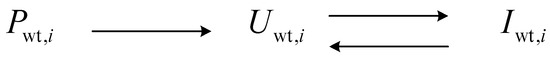 Since the wind turbine units are connected in series, the current flowing through any wind turbine unit is equal to the current of the wind farm . Therefore, the output power of the ith wind turbine unit satisfies: