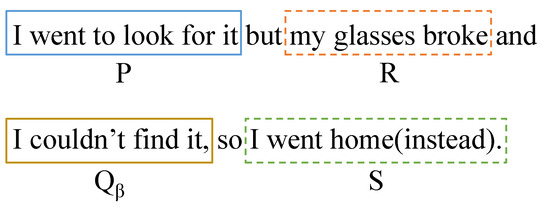 Many linguistic researchers have explored the internal semantic elements of adversative sentences. Longacre [26] analyzed adversative sentences in English and proposed that they consist of five internal semantic elements P, Q, R, , S.