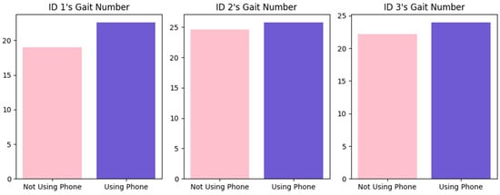 Gait numbers that occurred when a mobile phone was or was not used by the subjects.