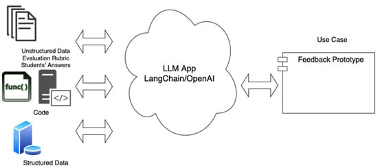 The execution of this feedback system was distinguished by a number of essential elements: (a) The integration of a structured rubric and prompts—the initial phase entailed the creation of an elaborate assessment rubric accompanied by prompts that unambiguously specified the criteria for evaluation and the diverse tiers of achievement. The purpose of this rubric was to function as the fundamental element of the automated feedback system, providing precise and transparent guidance throughout the evaluation process. (b) Language model involvement—by employing the LangChain framework, we combined state-of-the-art language models, including GPT-4, to enable students to engage in conversations that were both substantive and contextually appropriate. The role of these models was to analyze, interpret, and produce feedback in accordance with the predetermined criteria outlined in the rubric. (c) The generation of personalized feedback—by capitalizing on the agentic capabilities of LangChain, the automated system was engineered to generate individualized feedback for every participant. The feedback provided was customized to target particular areas that were identified by the rubric. Its purpose was to be instructive and contextual, directing learners towards significant growth. (d) Adaptability and scalability—improving the scalability of feedback distribution within the MOOC was a principal aim of this endeavor, facilitating the timely and individualized provision of feedback to a substantial student body. Furthermore, the system was designed with adaptive capabilities, allowing it to be modified in accordance with user input to promote ongoing enhancements. Figure 1 presents the architectural structure of the developed system.