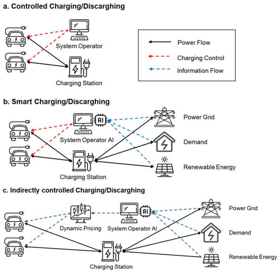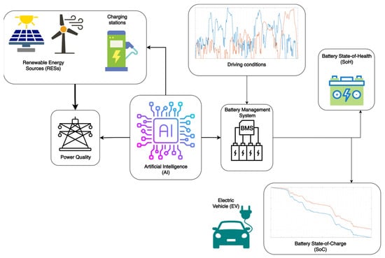 - With a smart strategy, the role of AI is to integrate EV charging operations within a V2G management protocol. Here, the system acts as a control strategy for either a vehicle or a charging station based on information flows coming from the power distribution grids, RES production plant, and load demand. The required energy flow is then managed on the infrastructure side.