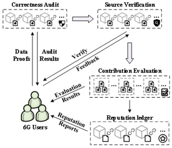 The verifiability principle states that all data-contribution assessments must be verifiable. Any results generated during the assessment process should be independently verifiable to ensure their accuracy and fairness. Using the ultra-low latency and high-speed data-transmission capabilities of 6G, real-time verification of data-contribution assessments can be achieved. With the extensive connectivity and enhanced bandwidth of 6G networks, broader data synchronization and sharing can be realized, enhancing system transparency.