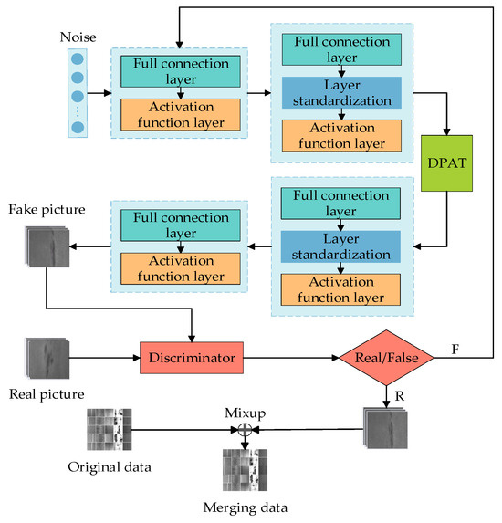 The development of deep learning technology is based on the successive development of the Deep Boltzmann Machine (DBM), Pixel Recurrent Neural Network (PixelRNN), and generative adversarial network (GAN). Data enhancement using methods such as generative adversarial networks (GANs) on small-sample data has become a hot research topic [11]. For example, Goodfellow and others first proposed generative adversarial neural networks and applied them to handwritten digits and facial image generation [12]. Deep convolutional generative adversarial networks (DCGANs), proposed by Radford et al., are an improvement upon generative adversarial networks (GANs) [13] which significantly improve the generative ability and stability of GANs and offer a powerful tool for the study of image generation and related fields. Kun Liu, Aimei Li et al. proposed the combination of generative adversarial networks (GANs) with the One-Class Classifier and the utilization of GANs for automatic feature learning. The One-Class Classifier was used to detect abnormal samples, thus improving the accuracy and efficiency of surface defect detection of steel plates [14]. Shengqi Guan, Jiang Chang, et al. proposed an improved generative adversarial network (GAN) and EfficientNet to classify strip steel defects; they achieved efficient defect detection in the industrial field through automatic feature extraction and deep learning algorithms, yielding remarkable results [15]. Although these methods have improved the speed and accuracy of detection, they still face challenges when dealing with small-sample datasets, particularly as the model’s generalizability may be limited when there is insufficient diversity in the training samples. To address this issue, this paper proposes a generative adversarial network incorporating a dual-path attention module and a U-Net structure. This paper aims to overcome the limitations of existing methods. In our study on generative adversarial networks (GANs), we have introduced a dual-path attention mechanism into the discriminator, along with the integration of the U-Net architecture to enhance its performance. This improvement offers more accurate spatial consistency feedback to the generative model, significantly enhancing the clarity and detail of the generated images. Additionally, by fully leveraging the advanced learning capabilities of GANs, we address the challenges associated with data augmentation in small-sample datasets, thereby increasing the diversity of the training data and reducing the risk of overfitting. This enables the model to better adapt to unseen data, subsequently improving product quality and production efficiency, thus effectively propelling the advancement of metal surface defect detection technology [16].