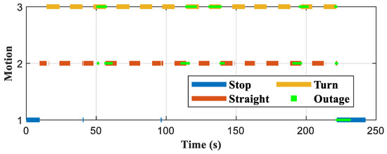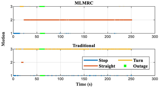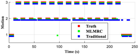 The traditional method judges the vehicle’s motion based on a fixed threshold which indicates that the vehicle first stops and then turns for a long time accompanied by multiple stop motion. The recognition results of the MLMRC method indicate that the vehicle starts from a stop motion, turns first, and then maintains a straight line with occasional individual stop motions. The truth is that the vehicle first stopped by the road, then turned and accelerated into the main road without any stopping midway. It is worth noting that for both straight and turn motions, due to the low curvature of the tunnel, the trajectory can be considered as both straight and turn segments, causing no significant difference, therefore the recognition results of the turn behavior do not perform well as shown in Table 11. Therefore, it can be inferred that the main reason for the poor performance of the traditional method is that it mistakenly recognizes multiple stop motions and misuses constraint equations, which once again confirms the reliability requirements of recognition.