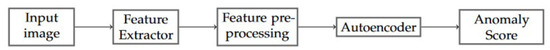 After the reconstruction process is completed, the reconstruction error undergoes a polynomial transformation. The transformation is as follows: The reconstruction step output is a tensor of shape (1, 7, 7, 160). The tensor is reduced to a scalar using Tensorflow’s built-in method, polyval. The polyval method returns a value of an n-order polynomial with given coefficients and the reconstruction tensor as input. The polynomial order is determined by coefficient vector length. Then, the polynomial value is simply clipped to a range of [0 0.99], which is the actual anomaly score for the given input image. The coefficients of the polynomial function are determined manually (by evaluating the output score for a set of test images with adjustment of the coefficients), so that the decision border for a set of images is near the value of 0.25. The actual coefficient’s vector determined by us is [1.550 × 103, −7.545 × 103, 1.559 × 104, −1.781 × 104, 1.227 × 104, −5.209 × 103, 1.336 × 103, −1.974 × 102, 1.671, −2.975 × 10−2.