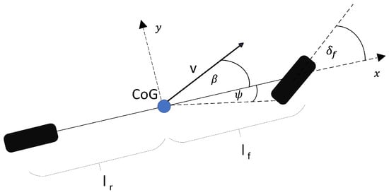Numerous methodologies exist for the physical representation of vehicles, thus offering diverse models grounded in geometric, kinematic, and dynamic constraints [21]. When considering their application, careful consideration must be given to the velocity of the vehicle’s motion. At lower speeds, a kinematic description provides a sufficiently accurate approximation [22]. Nevertheless, for the evaluation of highway conditions or higher velocities, it becomes imperative to integrate and compute forces and torques influencing the vehicle’s dynamics. In such scenarios, the adoption of dynamic vehicle models becomes indispensable for achieving a more precise representation and analysis.