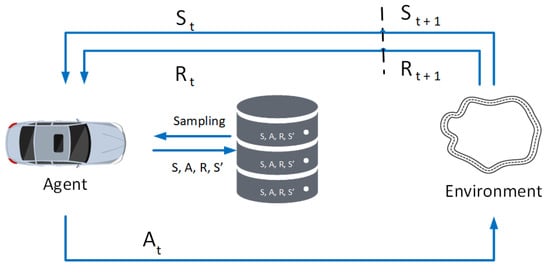 The quality of decision making emerges along state transitions, which can be described with the state–action value function, also known as the Q function. These state transitions in many cases are stored in a memory and used afterwards for parameter adjustment of a neural network via stochastic sampling from a uniform distribution. The Q function is formulated as shown in Equation (10):
