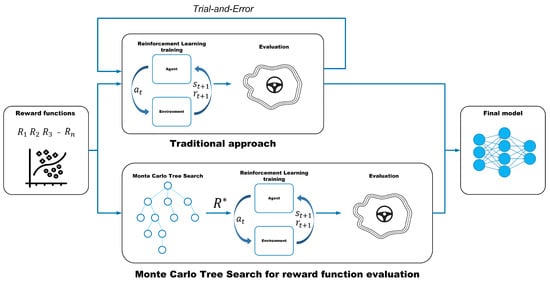 - Kövári, B.; Pelenczei, B.; Bécsi, T. Monte Carlo Tree Search to Compare Reward Functions for Reinforcement Learning. In Proceedings of the 2022 IEEE 16th International Symposium on Applied Computational Intelligence and Informatics (SACI), Timisoara, Romania, 25–28 May 2022; IEEE: New York, NY, USA, 2022; pp. 123–128. [Google Scholar]