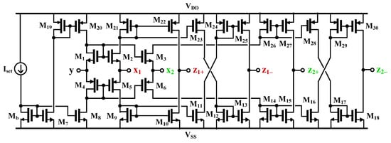 - Agrawal, D.; Maheshwari, S. Current-mode precision full-wave rectifier circuits. Circuits Syst. Signal Process. 2017, 36, 4293–4308. [Google Scholar] [CrossRef]