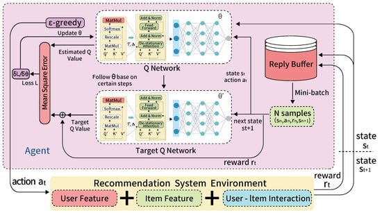 In 2023, global e-commerce not only continued its robust growth, reaching a remarkable $6.3 trillion in sales, an increase of 10.4% from the previous year [1,2], but also witnessed the parallel rise of short video content, with the market for short video platforms anticipated to expand to USD 3.24 billion by 2030 [3]. In this rapidly evolving environment, effectively recommending relevant products and engaging video content to consumers has become vital. Consequently, the field of recommendation systems has witnessed accelerated development, with various platforms, from online marketplaces to news aggregation sites and short video platforms, deploying algorithms tailored to their unique requirements. These algorithms are often rooted in advanced methodologies such as deep learning-based models for predicting product click-through rates (CTR), such as deep factorisation machines (DeepFM) [4], wide & deep [5], deep interest evolution network (DIEN) [6], behaviour sequence transformer (BST) [7], and reinforcement-learning-based models for sequential product recommendations, such as Exact-k [8] and traditional deep reinforcement learning algorithms. Double deep Q-network (DDQN) [9], proximal policy optimisation (PPO) [10], and deep deterministic policy gradient (DDPG) [11] aim to maximise overall utility.